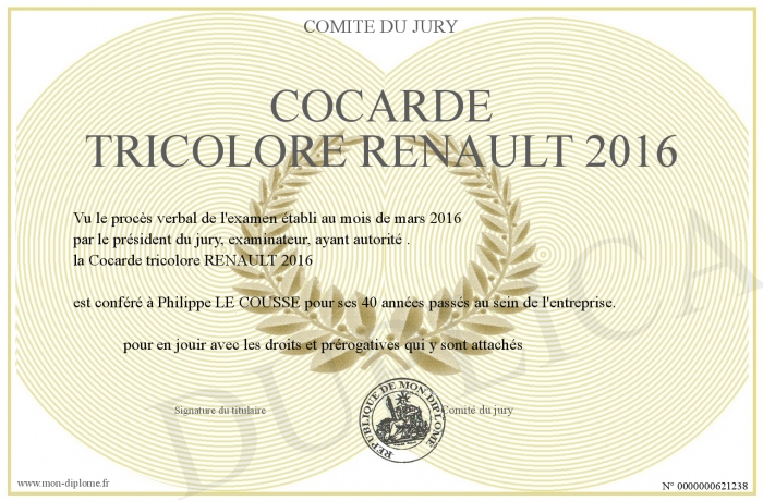 Envoyez par email votre COCARDE TRICOLORE RENAULT 2016 personalisé