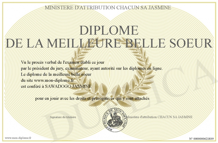Envoyez par email votre Diplôme de la meilleure belle soeur personalisé