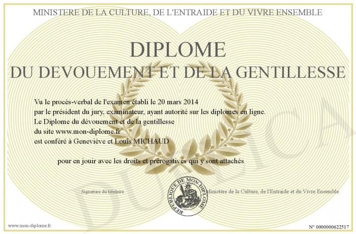 Envoyez par email votre Diplôme du dévouement et de la gentillesse personalisé