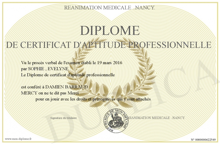 Envoyez par email votre Diplôme de certificat d'aptitude professionnelle personalisé