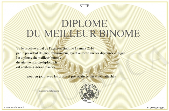 Envoyez par email votre diplôme du meilleur binôme personalisé
