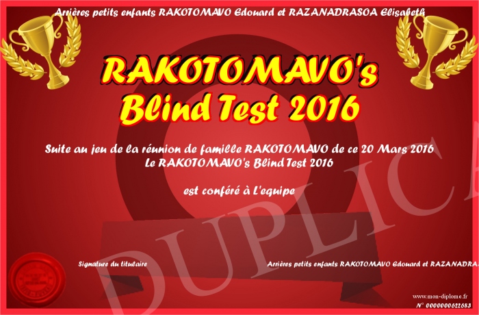 Envoyez par email votre RAKOTOMAVO's Blind Test 2016 personalisé