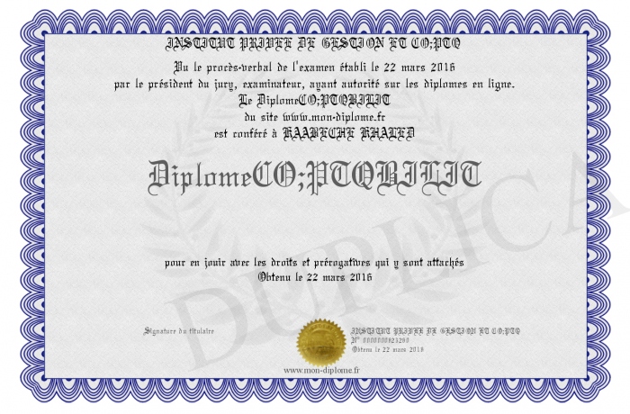 Envoyez par email votre DiplômeCO;PTQBILIT personalisé
