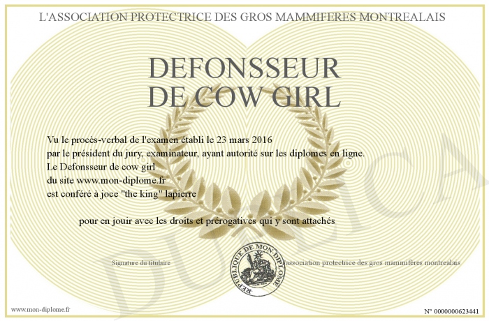 Envoyez par email votre Defonsseur de cow girl personalisé