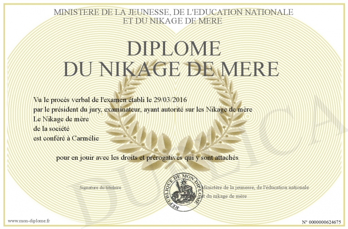Envoyez par email votre Diplôme du Nikage de mère personalisé