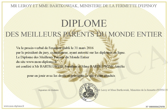Envoyez par email votre Diplôme des Meilleurs Parents du Monde Entier personalisé