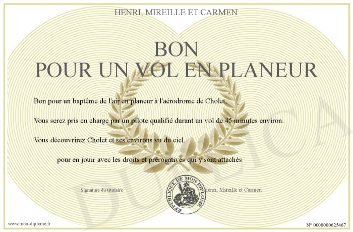 Envoyez par email votre Bon pour un vol en planeur personalisé