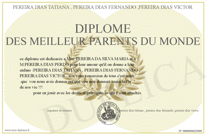 Envoyez par email votre DIPLOME DES MEILLEUR PARENTS DU MONDE personalisé