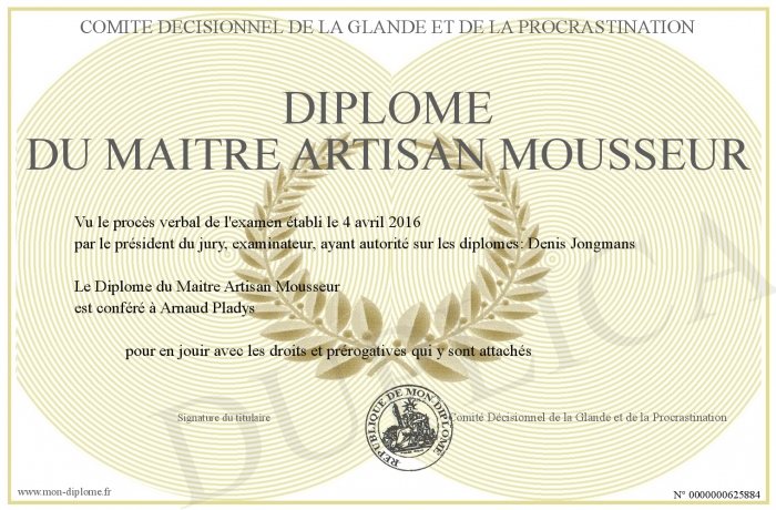 Envoyez par email votre Diplôme du Maitre Artisan Mousseur personalisé