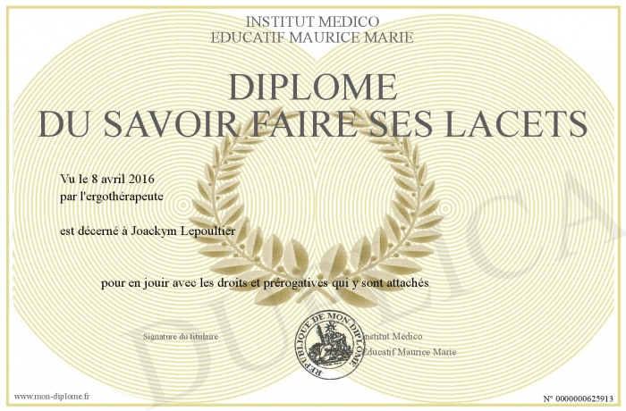 Envoyez par email votre Diplôme du Savoir Faire ses Lacets personalisé