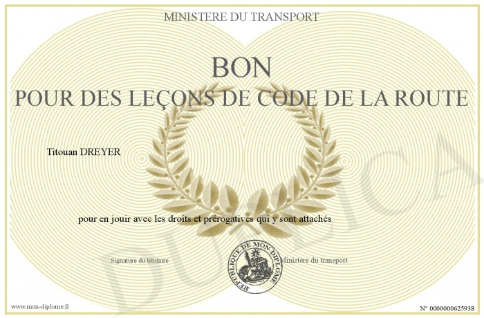 Envoyez par email votre bon pour des leÇons de code de la route personalisé