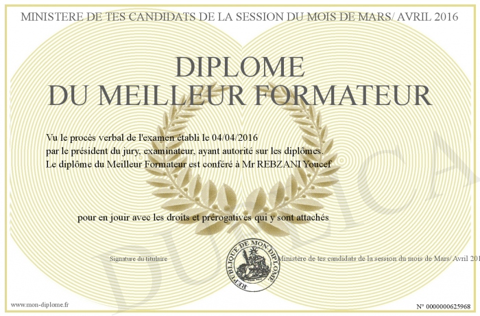 Envoyez par email votre Diplôme du Meilleur Formateur personalisé