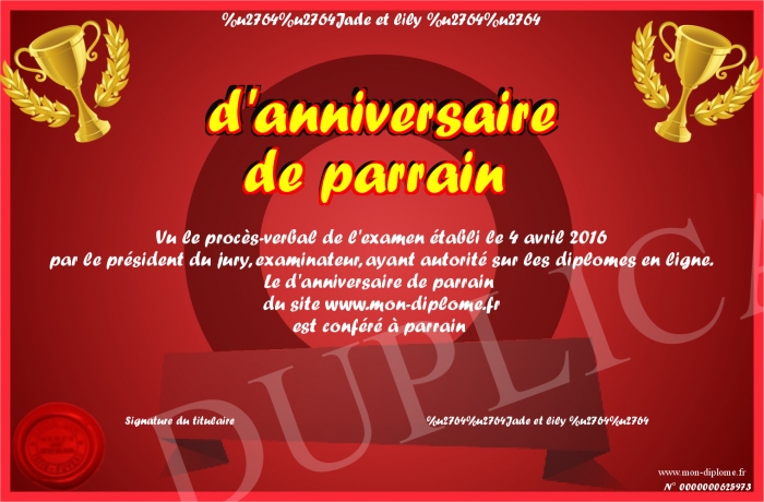 Envoyez par email votre d'anniversaire de parrain personalisé