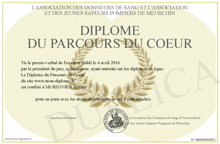 Envoyez par email votre Diplôme du Parcours du Coeur personalisé