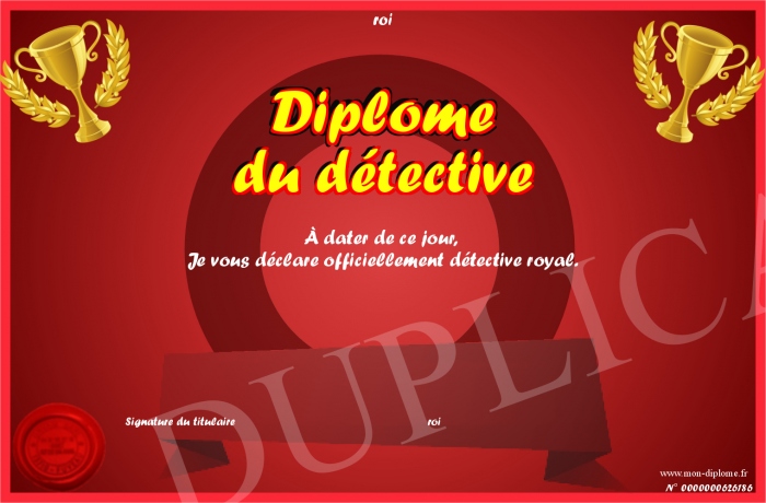 Envoyez par email votre Diplôme du détective personalisé