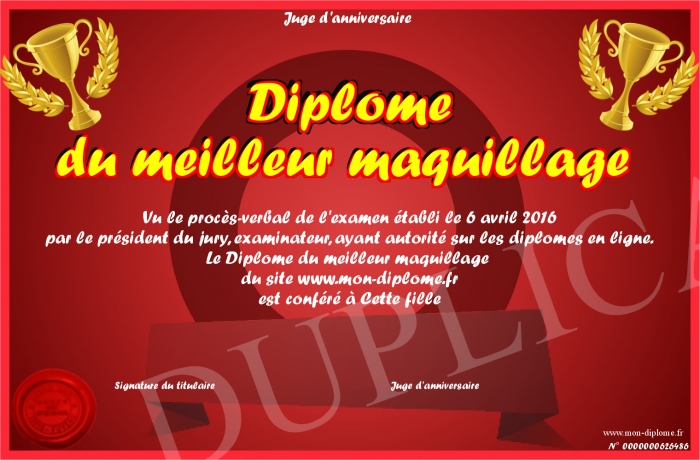 Envoyez par email votre Diplôme du meilleur maquillage personalisé