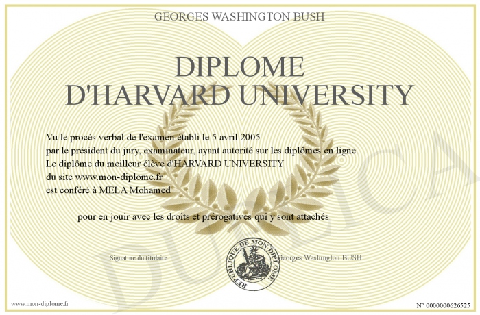 Envoyez par email votre Diplôme d'HARVARD UNIVERSITY personalisé