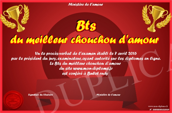 Envoyez par email votre Bts du meilleur chouchou d'amour personalisé