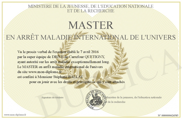 Envoyez par email votre MASTER en arrÊt maladie international de l'univers personalisé