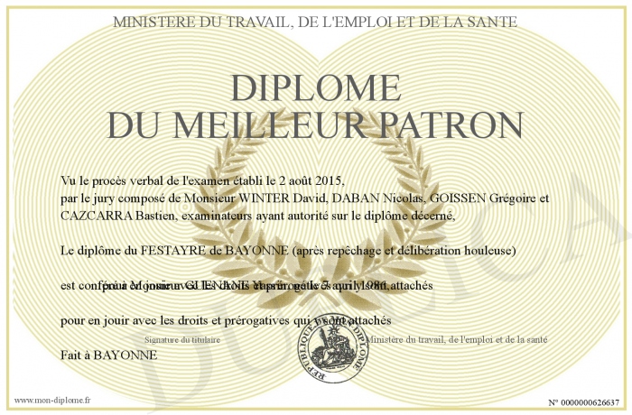 Envoyez par email votre Diplome du meilleur patron personalisé