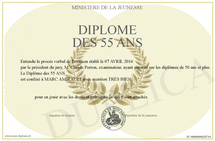 Envoyez par email votre Diplôme DES 55 ANS personalisé