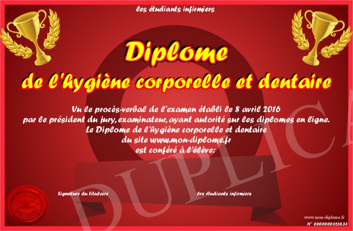 Envoyez par email votre Diplôme de l'hygiène corporelle et dentaire personalisé