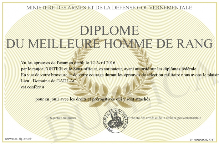 Envoyez par email votre Diplôme du meilleure homme de rang personalisé