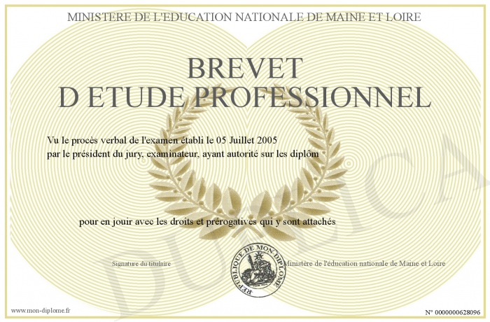 Envoyez par email votre Brevet d etude professionnel personalisé