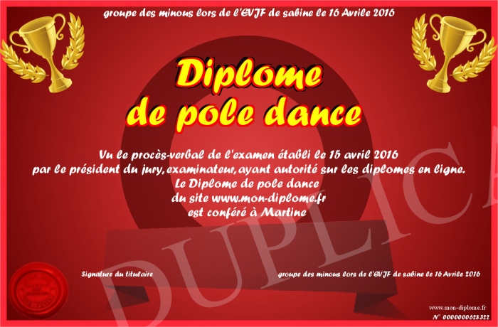 Envoyez par email votre Diplôme de pôle dance personalisé