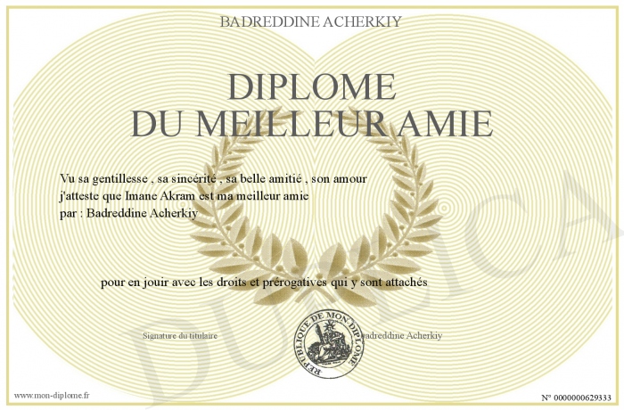 Envoyez par email votre Diplôme du meilleur amie personalisé