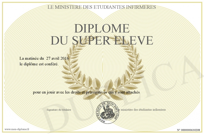 Envoyez par email votre Diplôme du super élève personalisé