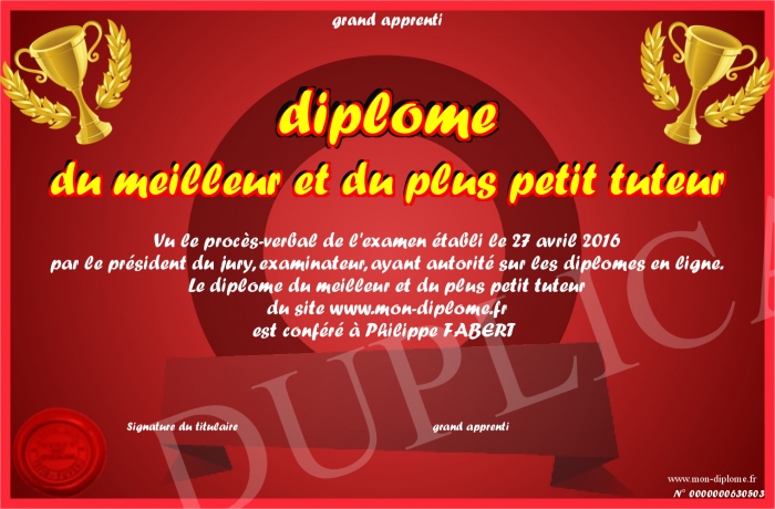 Envoyez par email votre diplôme du meilleur et du plus petit tuteur personalisé