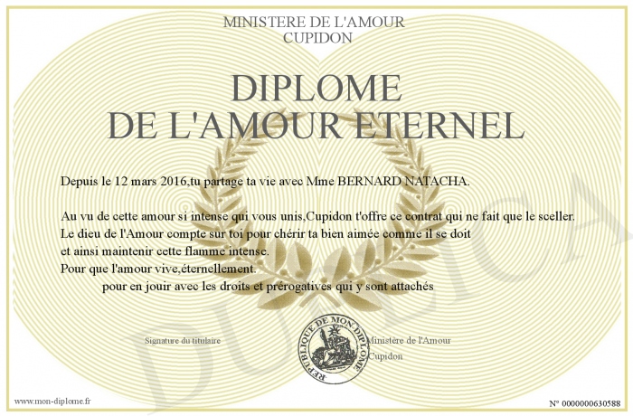 Envoyez par email votre Diplôme de l'Amour Eternel personalisé