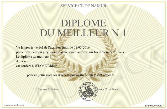 Envoyez par email votre Diplôme du meilleur N 1 personalisé