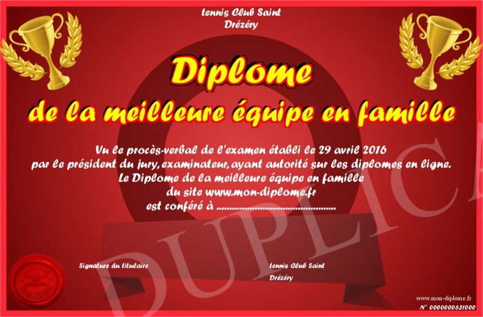 Envoyez par email votre Diplôme de la meilleure équipe en famille personalisé