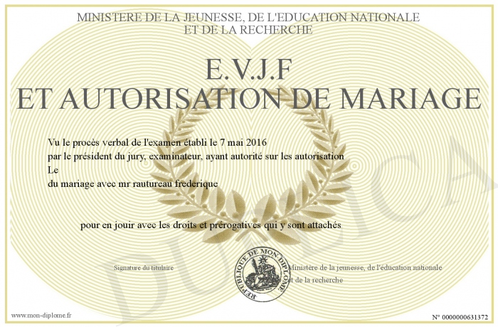 Envoyez par email votre e.v.j.f et autorisation de mariage personalisé