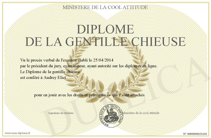 Envoyez par email votre Diplôme de la gentille chieuse personalisé