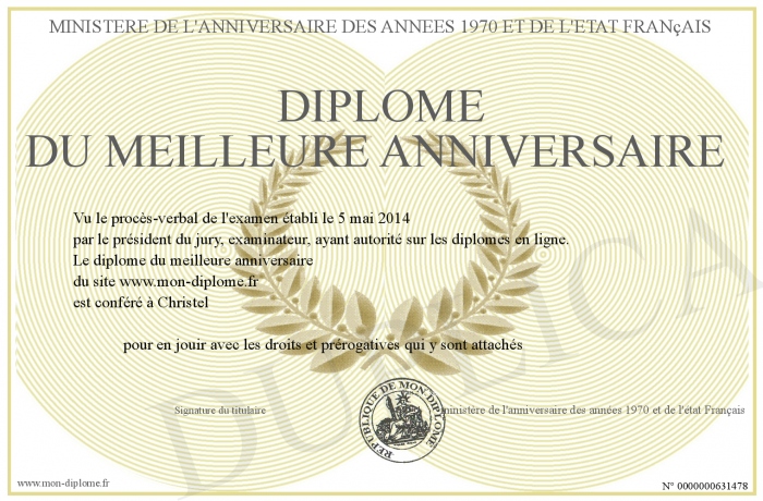 Envoyez par email votre diplome du meilleure anniversaire personalisé