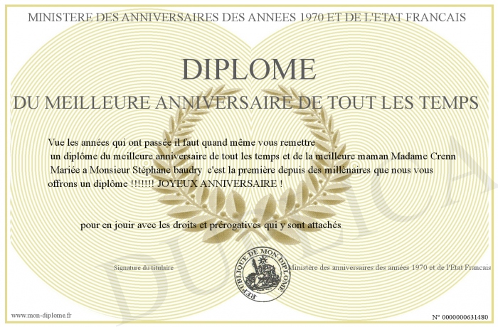 Envoyez par email votre Diplôme du meilleure anniversaire de tout les temps personalisé