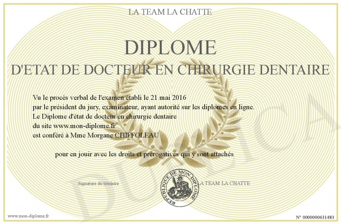 Envoyez par email votre Diplome d'état de docteur en chirurgie dentaire personalisé