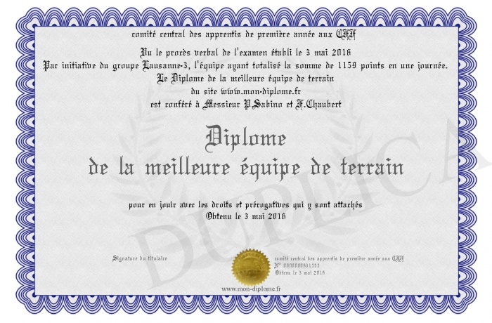 Envoyez par email votre Diplôme de la meilleure équipe de terrain personalisé