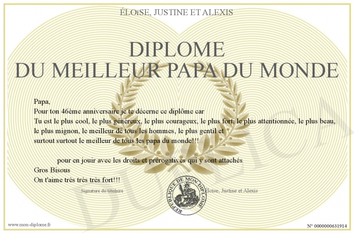 Envoyez par email votre diplôme du meilleur papa du monde personalisé