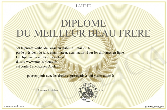 Envoyez par email votre Diplome du meilleur beau frère personalisé