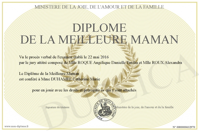 Envoyez par email votre Diplôme de la meilleure Maman personalisé