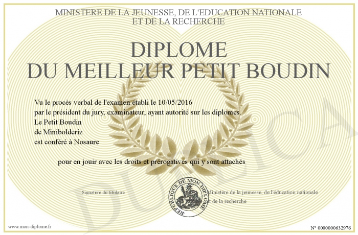 Envoyez par email votre Diplôme du Meilleur Petit Boudin personalisé