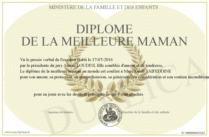 Envoyez par email votre DIPLOME DE LA MEILLEURE MAMAN personalisé