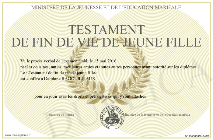 Envoyez par email votre Testament de fin de vie de jeune fille personalisé