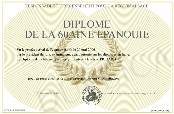 Envoyez par email votre Diplôme de la 60aine épanouie personalisé