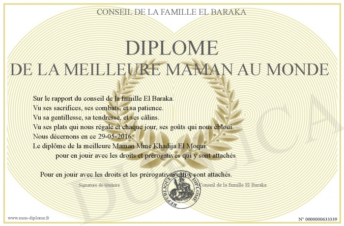 Envoyez par email votre Diplôme de la meilleure Maman au monde personalisé