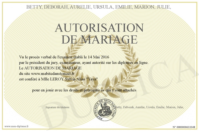 Envoyez par email votre Autorisation de mariage personalisé